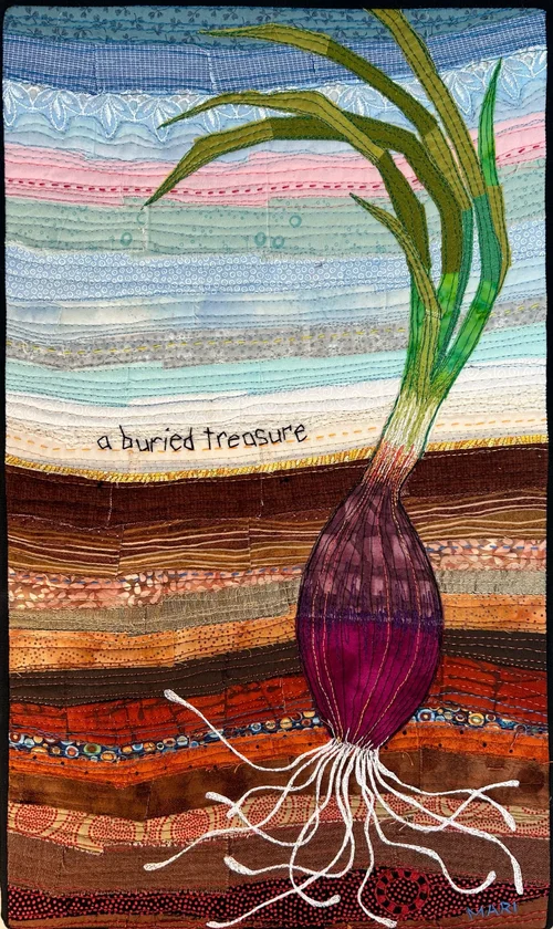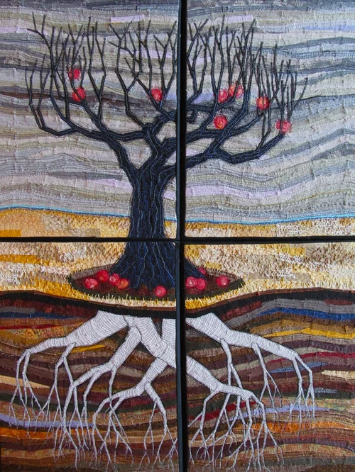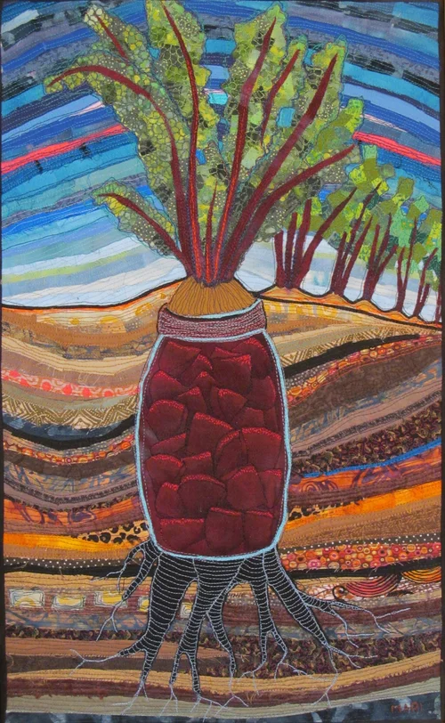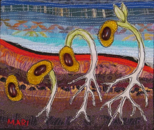 All works below were created in the raw edge piecing method, then quilted with dense free motion stitching.